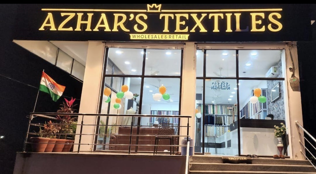 Azhar’s Textiles is a premier destination for men's clothing, specializing in designer suits, sherwanis, and party wear. We are conveniently located in Daimond Hills on Shastripuram Road near Owaisi Palace.