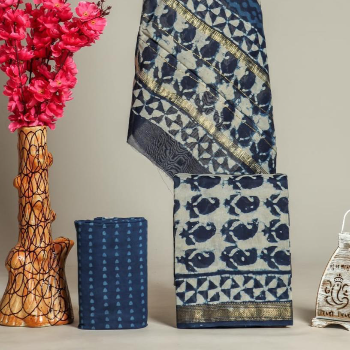 Discover the exquisite artistry of our Maheshwari Silk Suit handcrafted in Jaipur. This elegant attire features intricate block prints that exude charm and sophistication. Made from premium silk, this suit is a perfect blend of tradition and modern style. Choose our Maheshwari Silk Suit for a luxurious and unique addition to your wardrobe.
